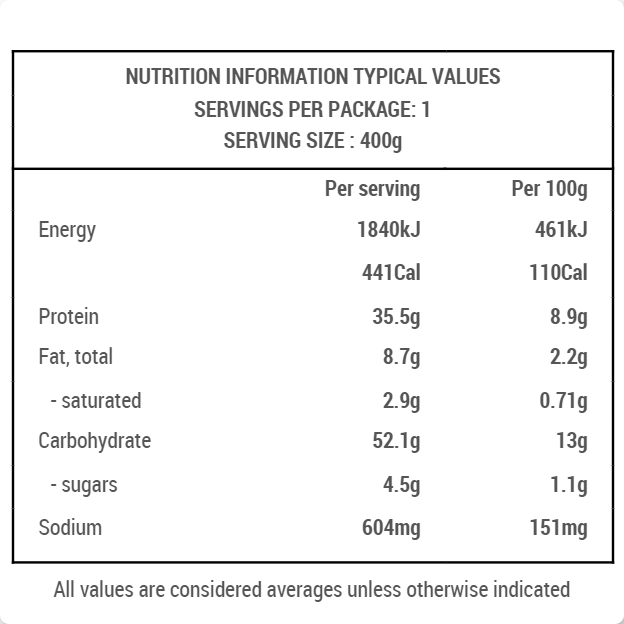 From Spain to NZ, our paella is cooked with paprika spiced chicken, chorizo, peas and capsicum and simmered in a fresh chicken stock.